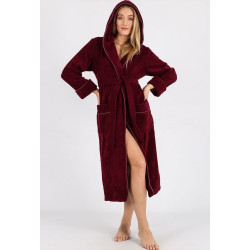 Женский велюровый бамбуковый халат с капюшоном на поясе Nusa ns 6890 bordo